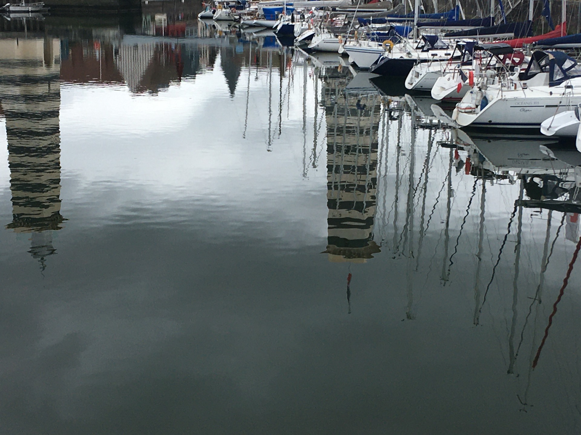 Na het inchecken begin ik spoorloos te wandelen. Ik steek het brugje van de jachthaven over, en neem het bijna-eiland, in noordelijke richting, tot aan de vissershaven van Trouville. Het preque-île was vroeger een dunbevolkt strookje landschap naast de Toques. Nu staat dit stadsdeeltje volgebouwd: niet al te hoge appartementsblokken, alweer in 'gestreepte' Normandische stijl; een rijtje koffiehuizen en brasserieën langs de kade van de Bassin Morny – in de zon is het er leuk toeven, de prijzen zijn navenant. Vergelijk eenvoudigweg de prijs van een melkkoffie en je weet hoe laat het is.