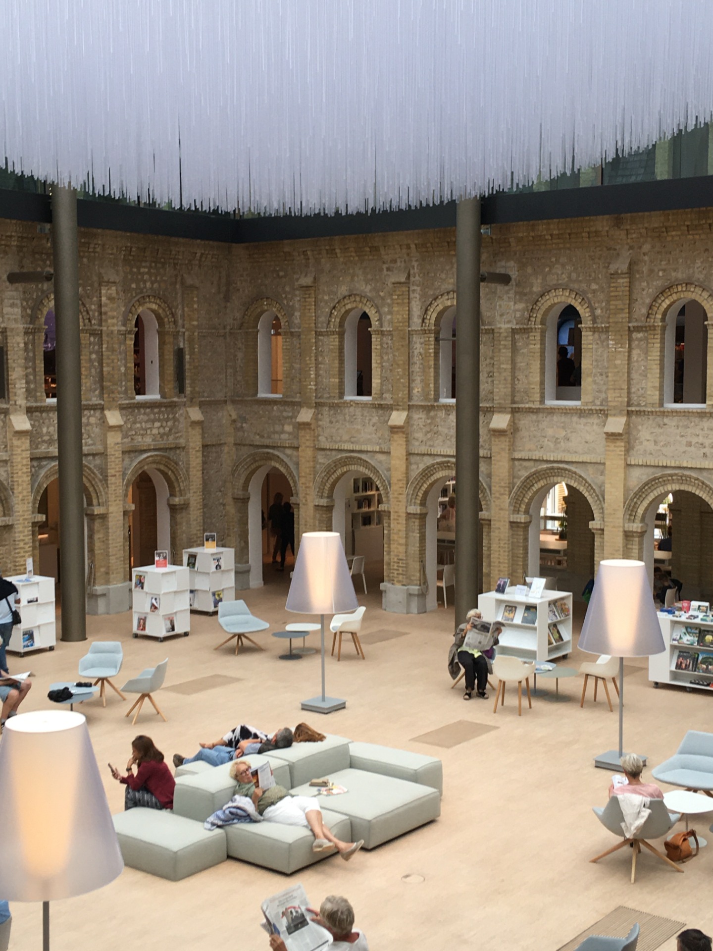 Les Franciskaines is een bibliotheek én museum in één, het ene loopt over in het andere, er is geen rangorde. Beneden vind je uiteraard ook een cultureel cafétaria, met tuinterras.